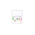 Our proven trout lures assorted in a practical tackle box with hanger. There are four distinctive mixes for different weather and water conditions, to ensure the angler has the most effective colours at hand for every situation on the water.