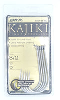 The Kajiki Light Gauge trolling hook is designed for trolling online up to 8kg. With the hand-ground point, these hooks offer superior penetration, and the Ultra-Antirust coating means that your hooks will stand up to corrosion for longer. The slightly turned in point on the Kajiki balances a quick & clean hook-up with maximum holding power - increasing your hook-up rate.