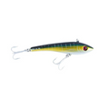 The lure is a massive 220mm long and weighs a substantial 180 grams and its slender profile casts like a bullet into the strongest breezes. It has been designed to run straight and true several metres below the surface in the roughest of sea conditions. The streamlined design allows for high operating speeds and maximum hook exposure, so critical in lure design.