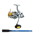 Okuma Avenger ABF Spinning Reel equips with cyclonic flow rotor, on/off auto trip bait feeding system, 6BB + 1RB stainless steel bearing , and rigid metal handle. The reel offers in sized from 4000 to 8000 that are suitable for different freshwater and saltwater fishing applications.