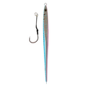 The Zest Curved Slider Jig is a centre weighted jig with great sliding (gliding) action but will bomb the depths too. The other side is entirely luminescent. Imagine the strobe effect as this luminous jig flutters to the bottom in deep water. Great for targeting Yellowtail Kingfish, Bluenose and Hapuka (Grouper) in deep water up too 100m. Mimics larger baitfish - which means it attracts even larger predators!